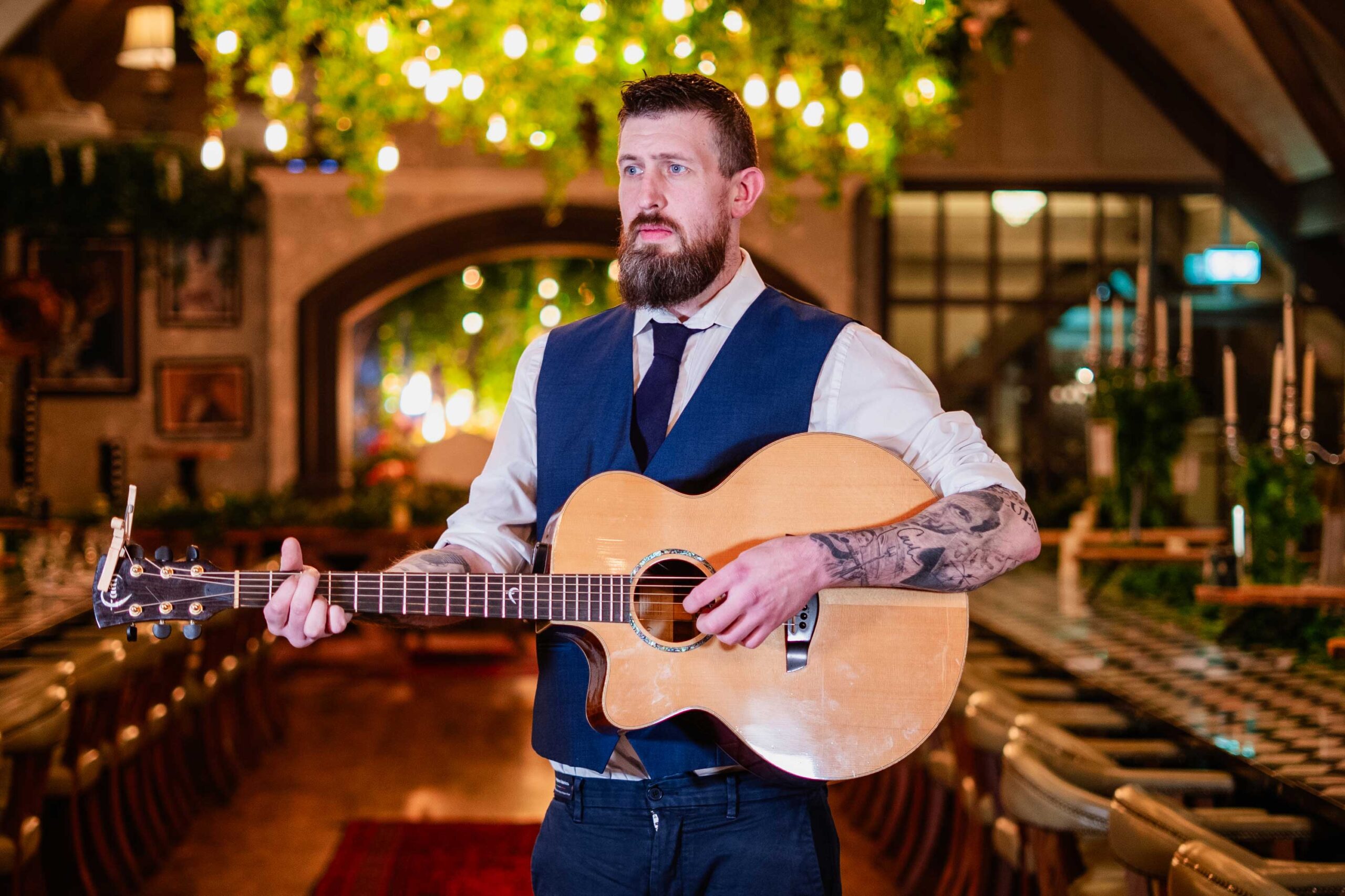 Ryan Price is the kind of guitar player who makes six strings sound like a confession. With calloused fingers he bends bluesy riffs into something raw and unforgettable. His voice, low, raspy, and edged with gravel, carries the weight of late nights and long gigging hours, turning every lyric into a lived-in story. Whether he’s fingerpicking a slow-burning ballad or strumming a well known floor filler, he plays like he means it, and sings like he’s got nothing left to hide.